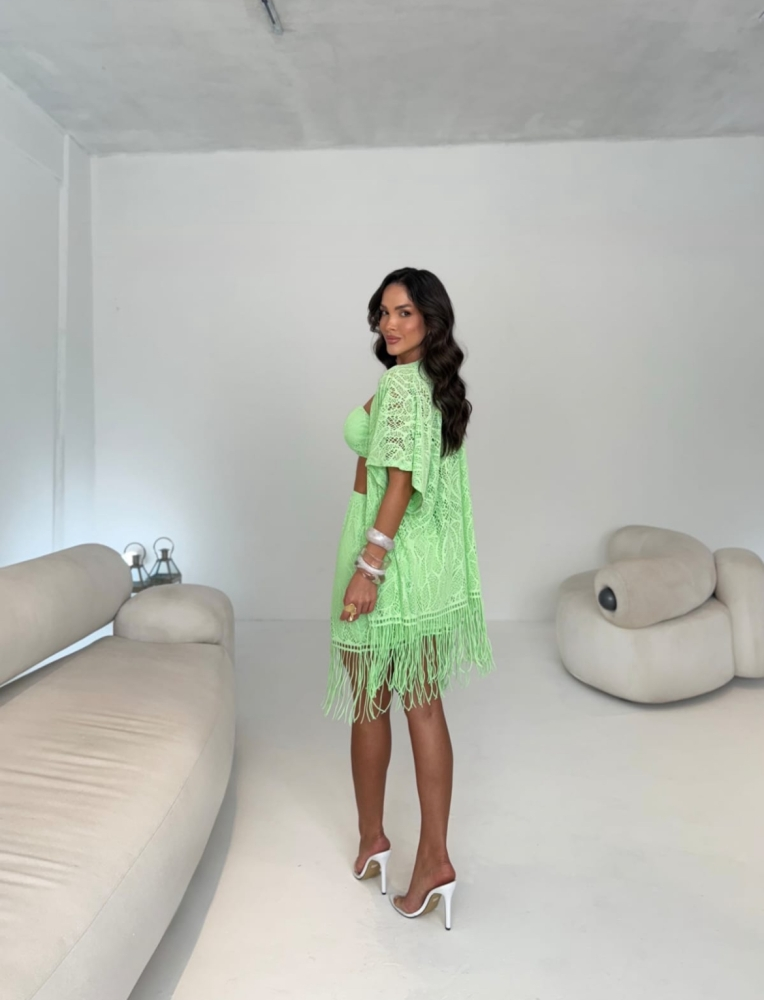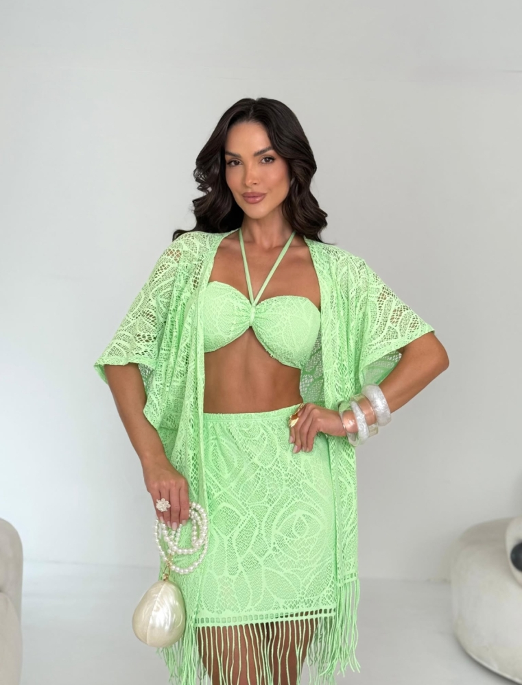 👆 conjunto kimono saía e cropeed. Tecido nacional renda macramé, poliamida nacional, tamanho único M